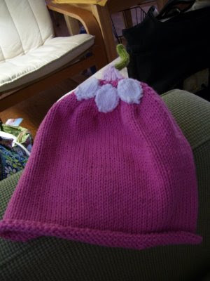 Baby hats are really almost like the dessert of knitting. They are quick, easy, cute, use little yarn, and provide instant gratification. No wonder I've got four down, one that needs finishing and another on the needles.